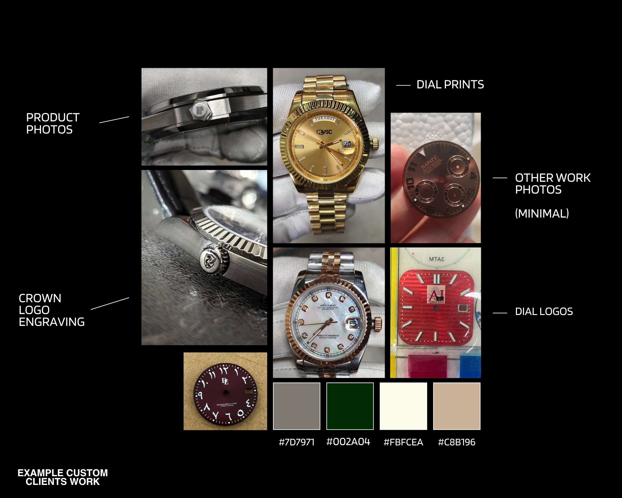 Simply choose your base model and explore customization options like dials, hands, and bezels. Our team is here to guide you through the process.