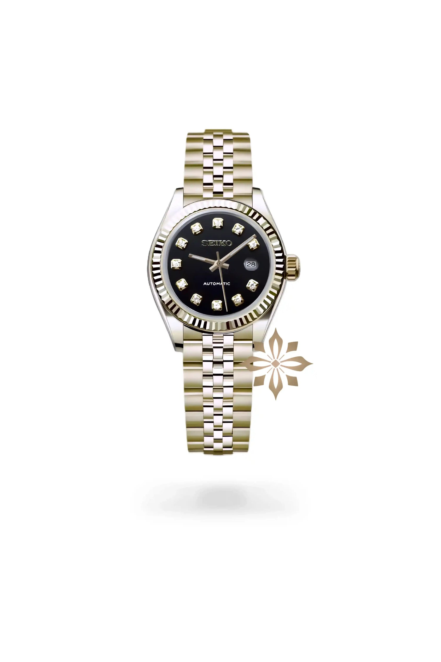 Ladies Seikojust mod watch 26mm gold black seiko mod automatic watch