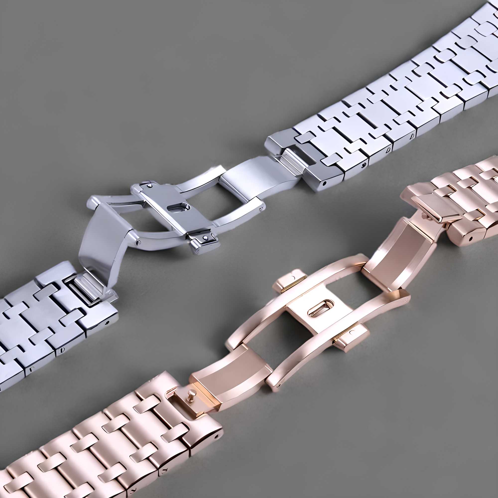 The aftermarket style butterfly clasp is another adding both elegance and functionality to the watch. Unlike traditional clasps, the butterfly clasp uses two hinged sides that open symmetrically, resembling a butterfly’s wings, which allows for a seamless, secure, and comfortable fit. This feature not only ensures a smooth, sleek look but also prevents the bracelet from being twisted or out of alignment when fastened.