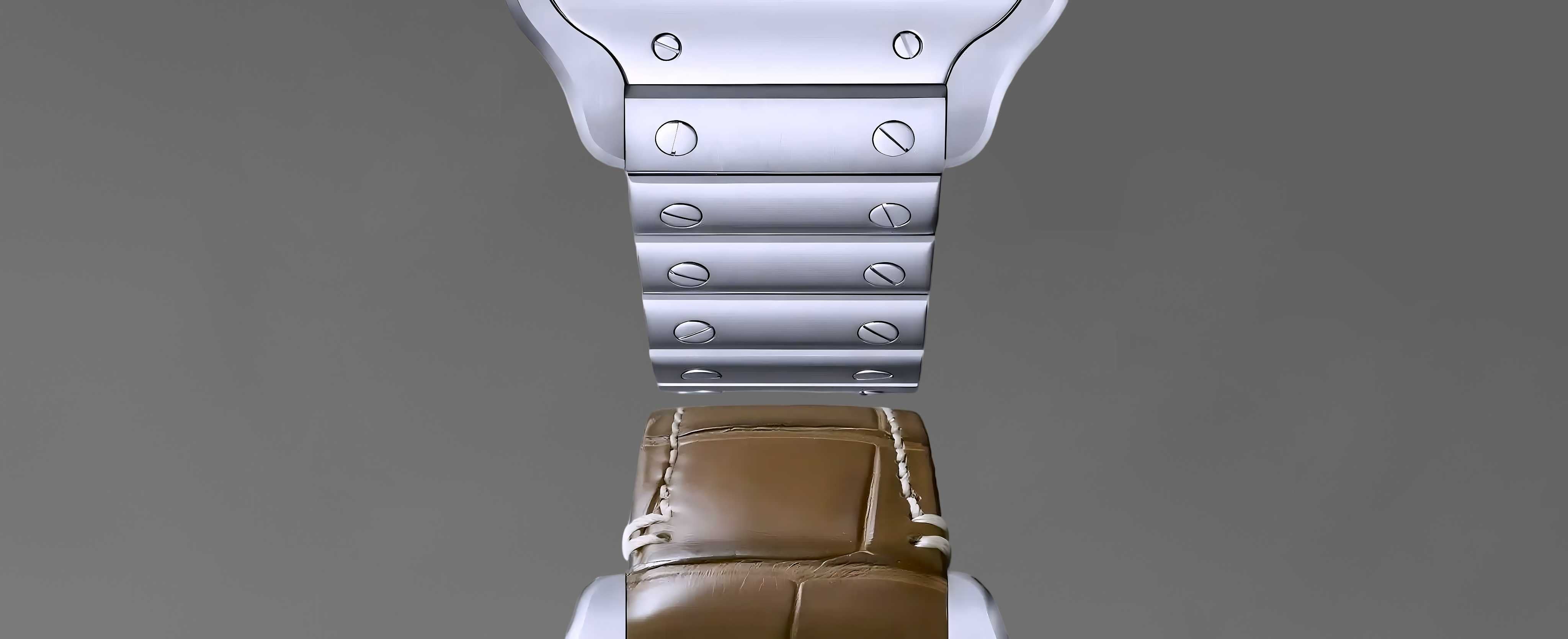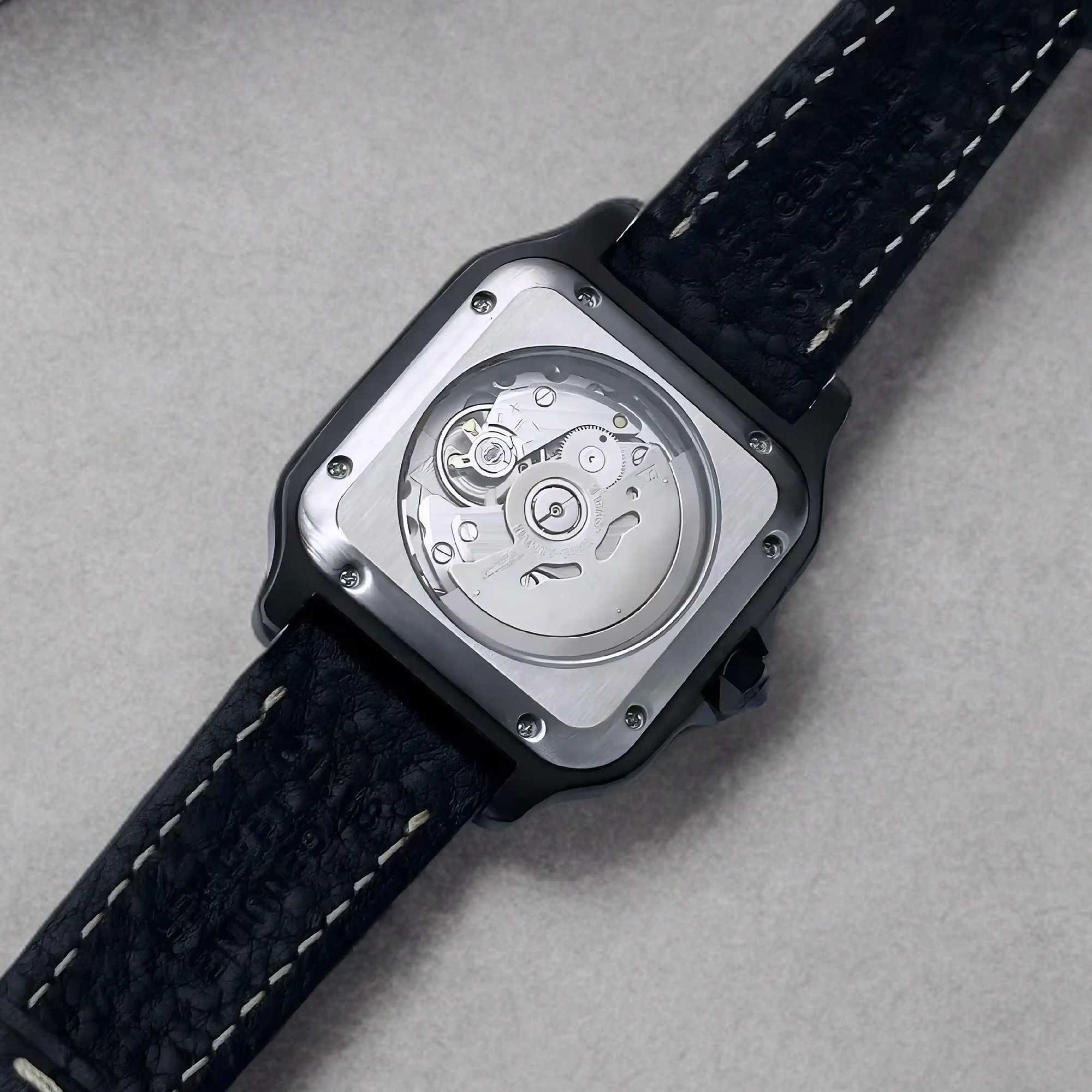 The homage santos style straps are offered with a leather band or steel variant. Its durable, screw-down steel bracelet combined style and comfort, becoming an iconic design widely admired in the watch industry today.