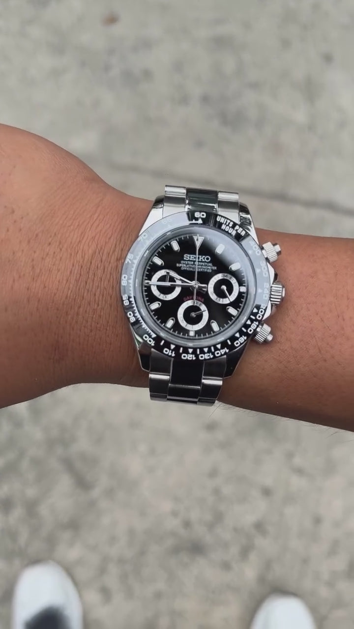A Seiko Mod Daytona mod is a customized watch that combines Seiko TMI's (a subsidary of Seiko company) reliable VK63 and VK64 movements by paying homage with similar design elements to the iconic Daytona watch. These mods are created using aftermarket and non-OEM parts sourced from different marketplaces and suppliers online.