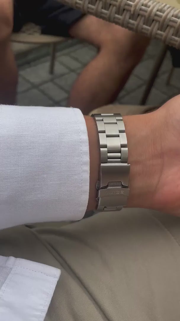 Its three-piece link structure offers a strong and secure fit, perfect for both everyday wear and adventurous pursuits. Known for its versatility, the Oyster style bracelet seamlessly transitions from casual settings to more formal occasions, ensuring style and performance in any environment, anytime.